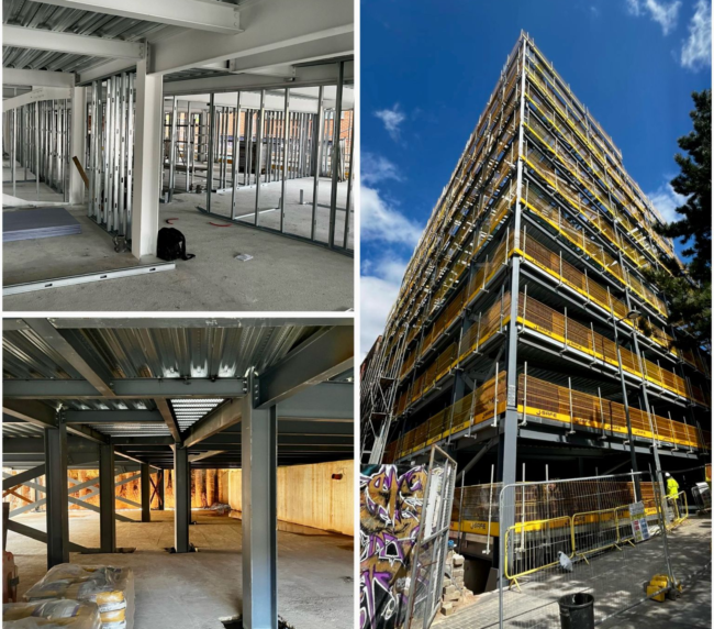 Exciting progress is being made on site at Blocks F & G in Botany Bay, Chorley, where our latest large steel frame structures are being erected for our client, FI…